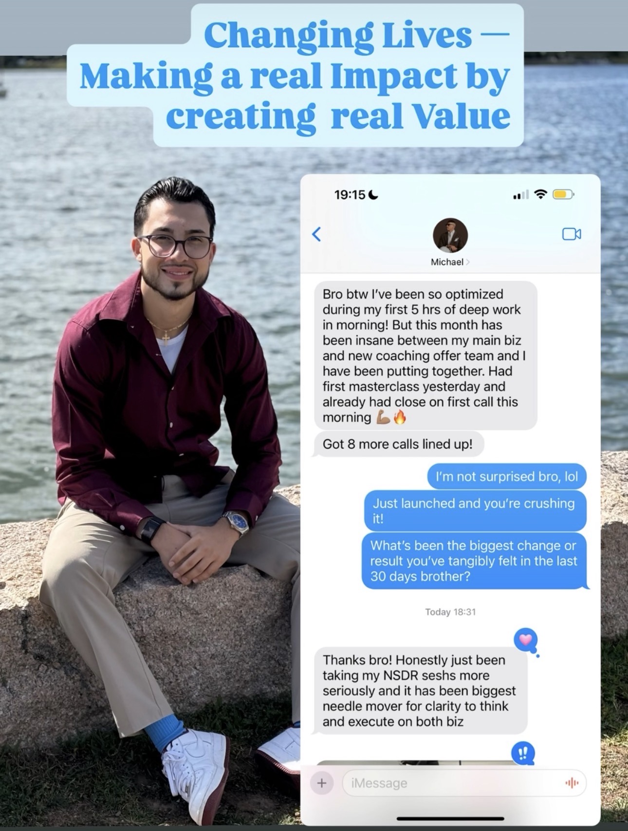 “I used to be the guy who stayed up all hrs of the night, not realizing I was killing my own success. Now I feel Excellent everyday and just crossed my first 20k/mo in comm’s”